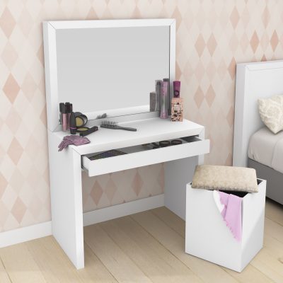 Ideal para espaços pequenos e para uma menina-mulher que necessita de um tempo para si mesma. Seu desgin limpo e a gaveta acoplada facilita o processo.