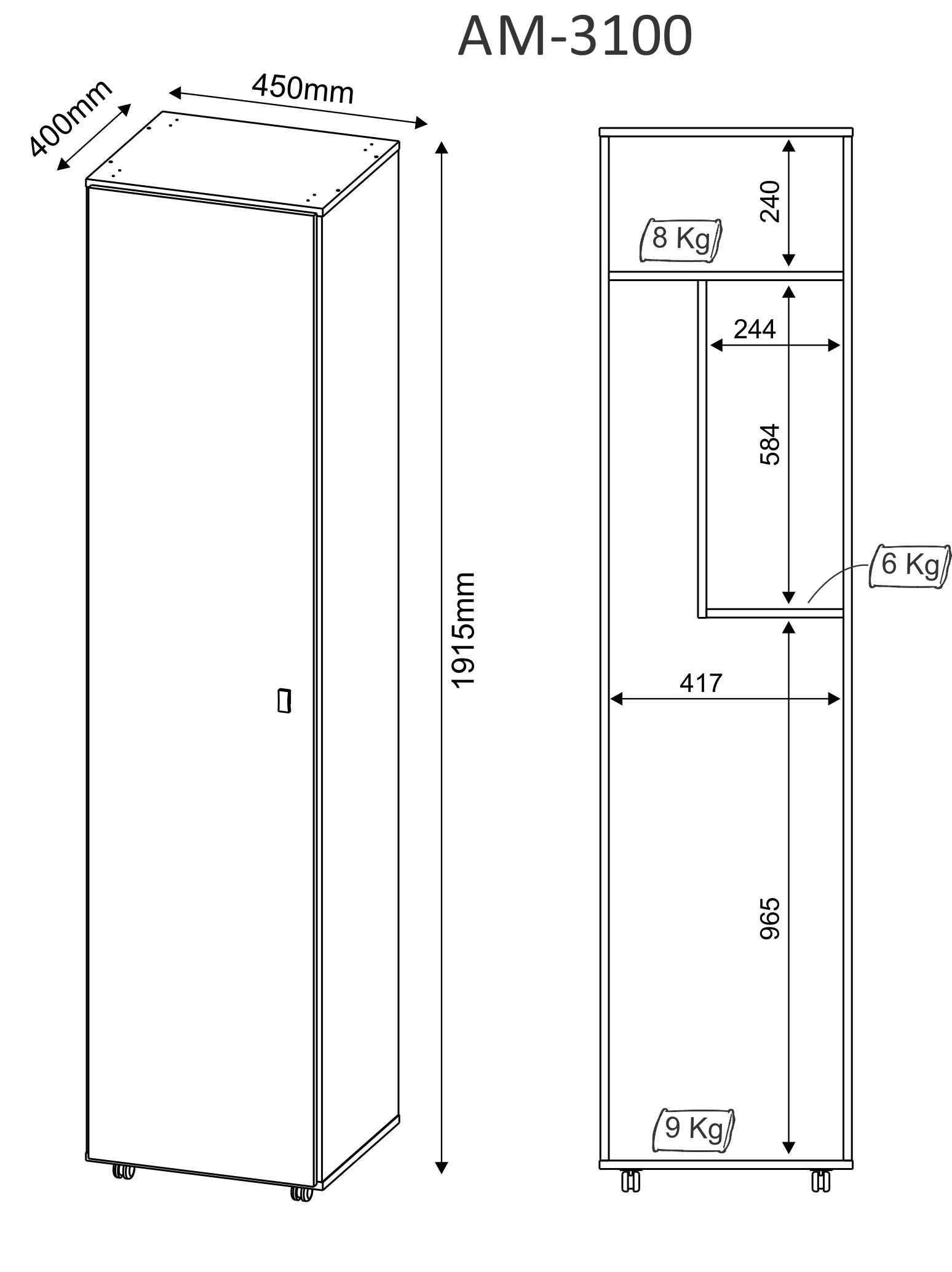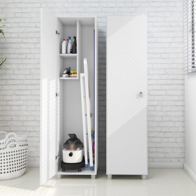ARMÁRIO DE SERVIÇO TECNOMOBILI, AM-3100, 1 PORTA, 2 NICHOS, LOCAL PARA GUARDAR VASSOURA E RODO, ESTRUTURA EM MDP, ACABAMENTO BP.