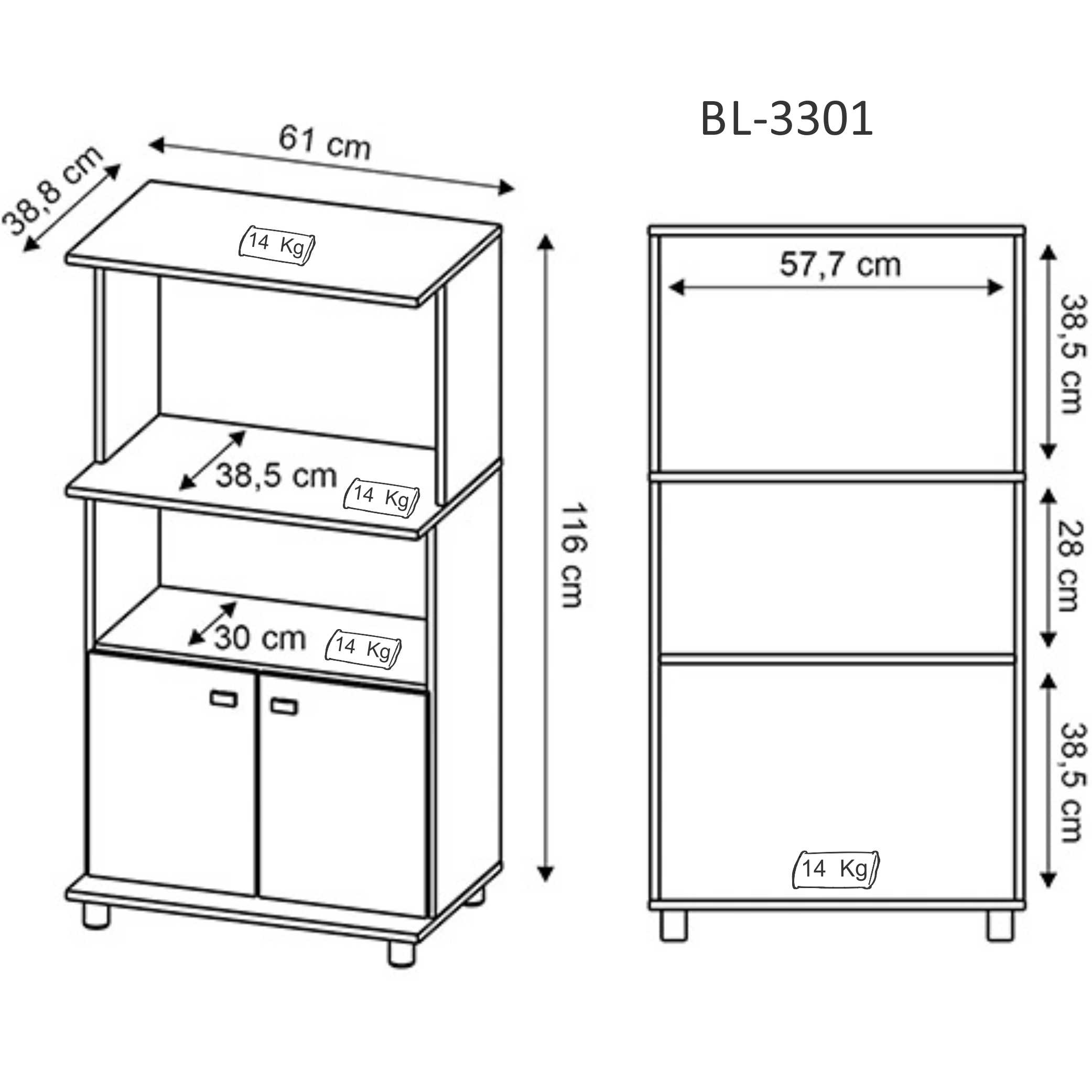 BALCÃO PARA MICROONDAS TECNOMOBILI, BL-3301, 2 PORTAS, ESTRUTURA EM MDP, ACABAMENTO BP.