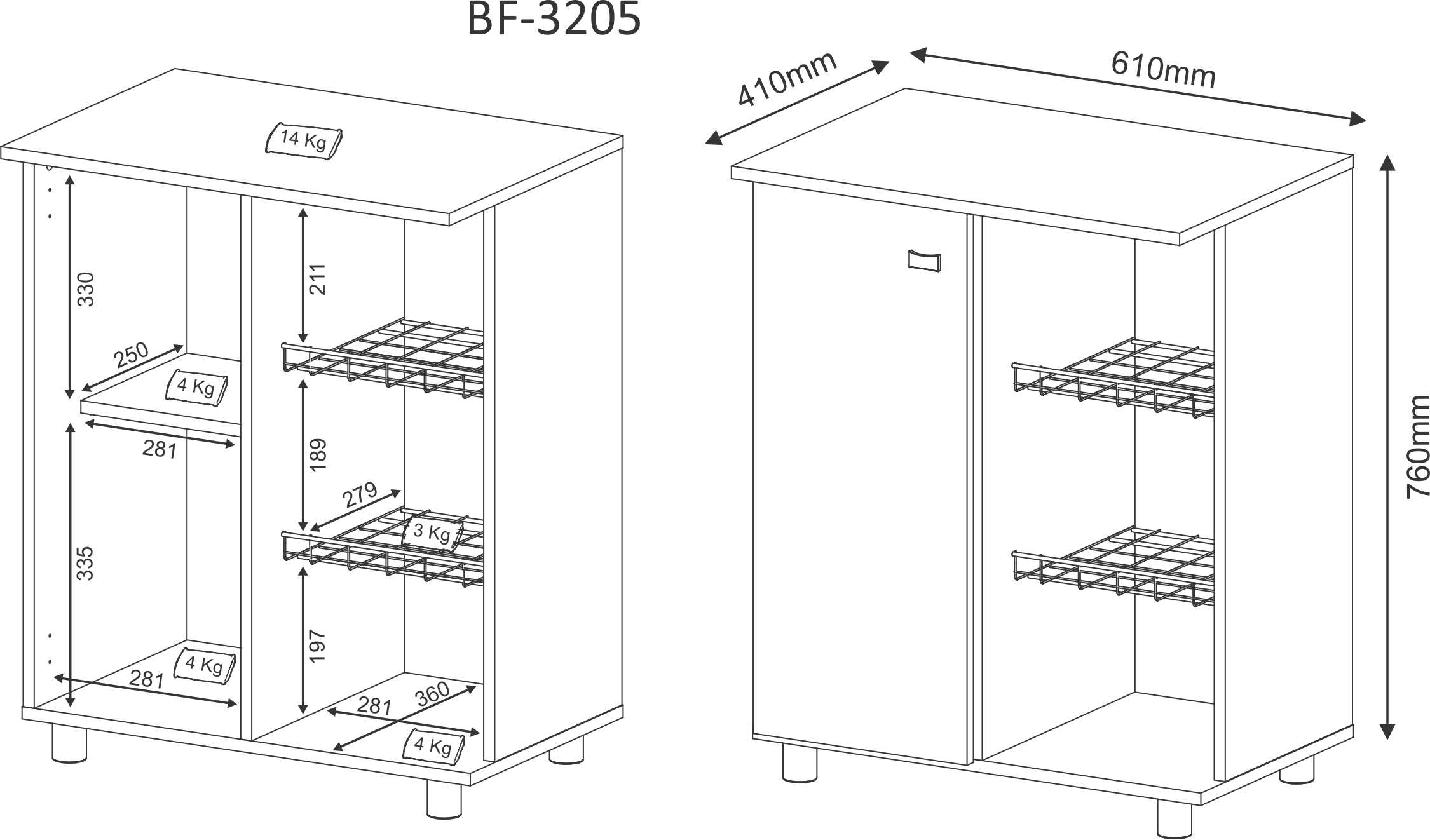 Dimensões (A x L x P): 76 x 61 x 41