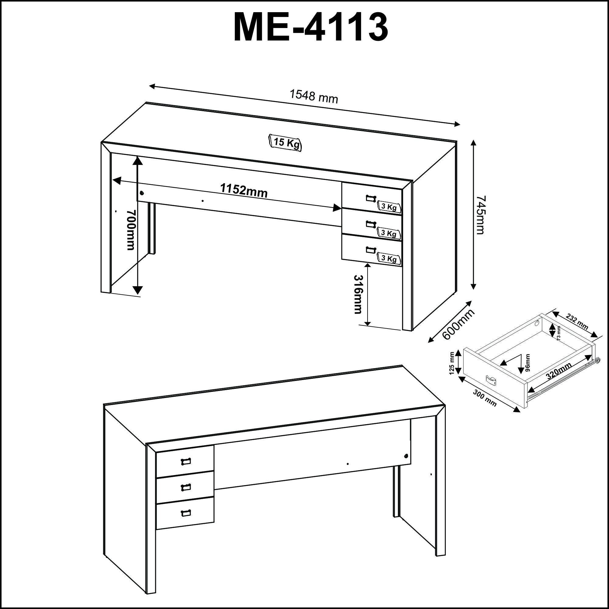 Dimensões (A x L x P): 74,5 x 155 x 60